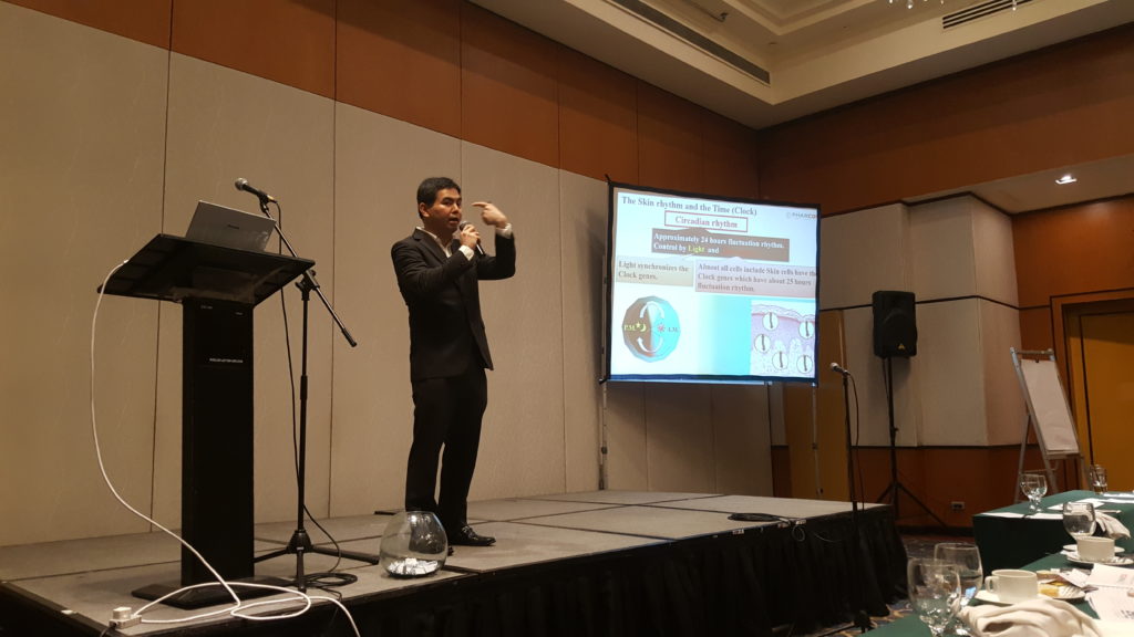 Mr. Ryota Tomioka of Ajinomoto-Singapore introducing Ajinomoto the company, its history and its products, also, fine specialty chemicals in color cosmetics.