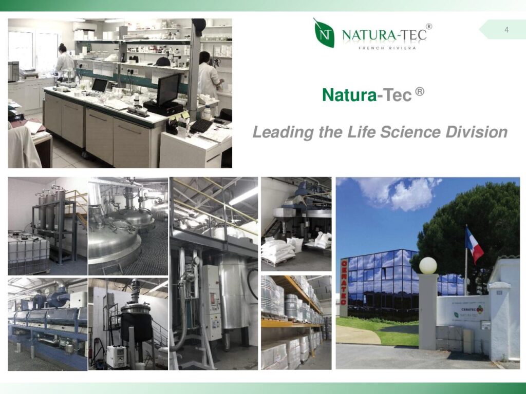 Natura-Tec is a member of the APG Group, an international oleo-chemical company based in Milan, Italy. Natura-Tec leads the Life Science Division of APG Group which focuses on production, manufacture, development and marketing of materials for the cosmetic industry based on natural ingredients.